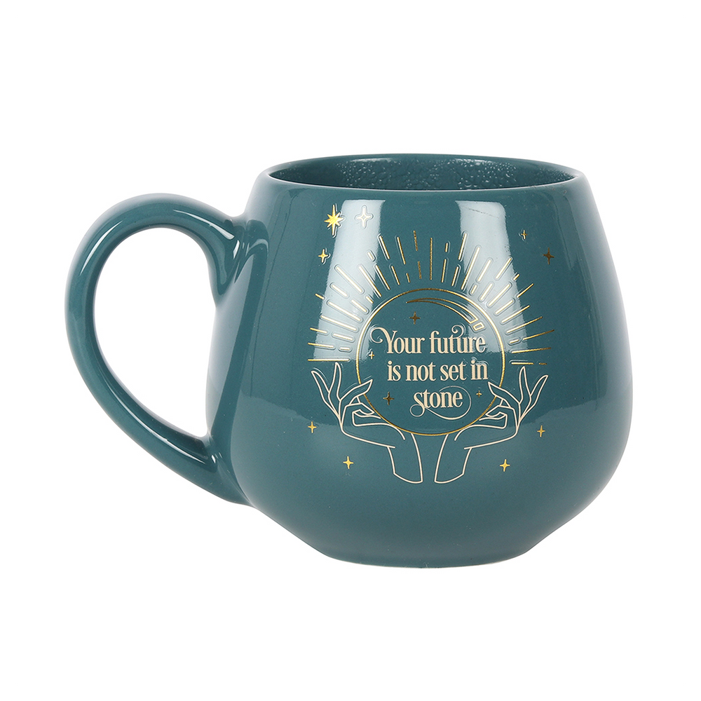 Add a hint of extra magic with every warm cup of tea. This rounded mug features a captivating colour change design that reveals a hidden fortune within the mystical crystal ball after a warm beverage is added. Hidden text reads, 'Your future is not set in stone' on a green base. Holds approximately 500ml. Do not microwave. Hand wash only.Packaged Dimensions: H10cm x W11cm x D13.4cm"