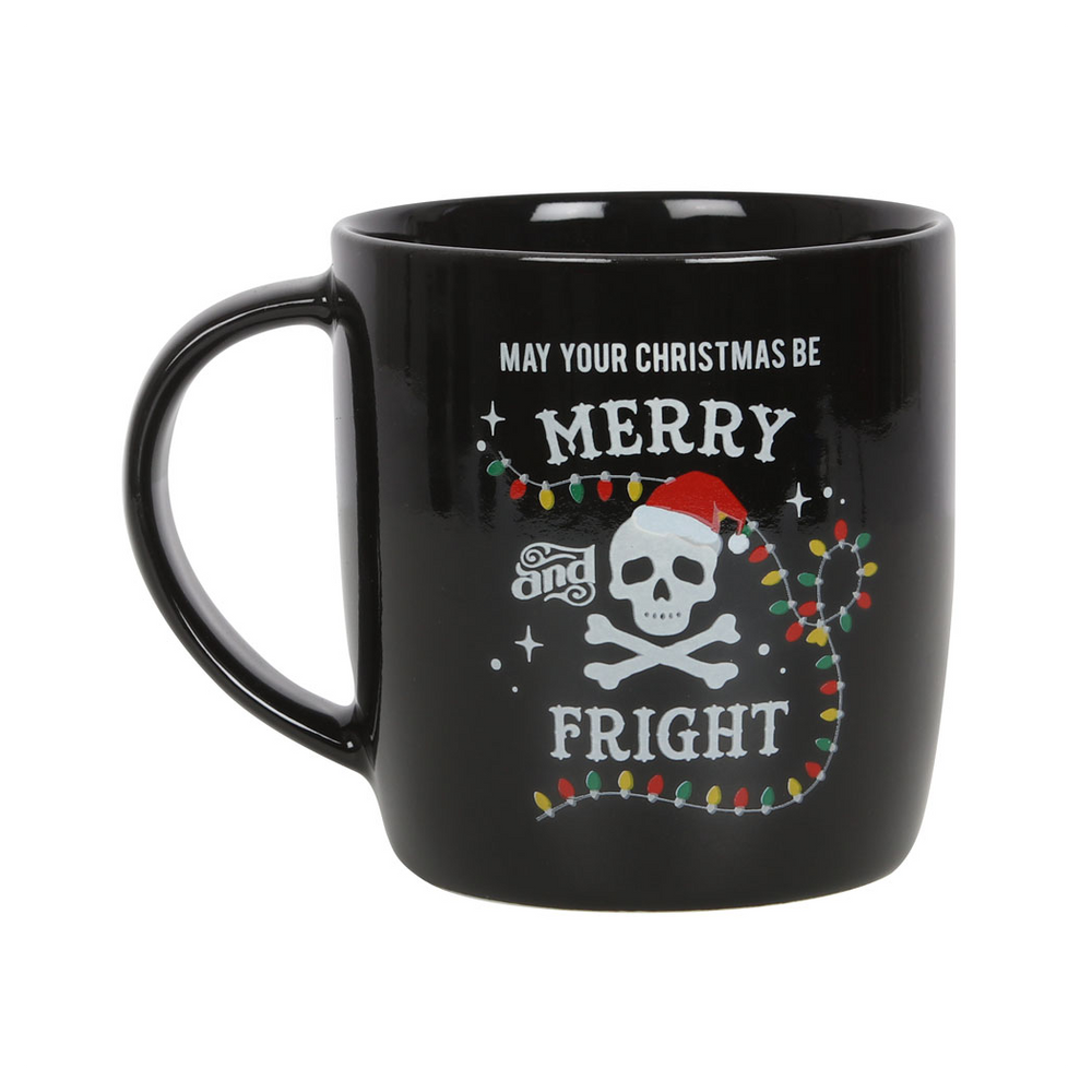 Tis the season for all things festive, even for those a little less traditional than most. This brilliant and unusual gothic mug features a festive skull and crossbones design with the text 'May your Christmas be merry and fright'. 500ml capacity. Dishwasher and microwave safe.Packaged Dimensions: H9.7cm x W11cm x D9cm"