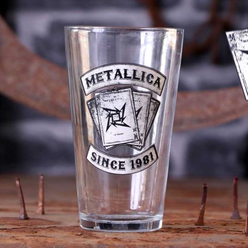 Have your favourite Metallica artwork on display at all times with this officially licensed Metallica Since 1981 Glass. This glass features the cards with the Metallica logo and 'Since 1981'. All of our glassware is handwash only to ensure the condition of the glass is kept to the best quality. This Metallica Since 1981 Glass will make the perfect addition to any Metallica or Heavy Metal collection.
