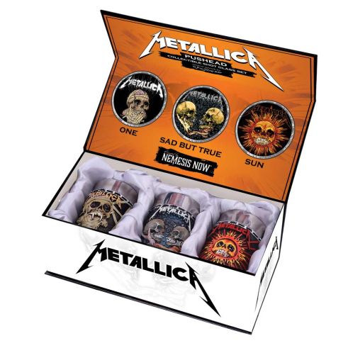 Have your favourite Metallica artwork on display at all times with this officially licensed Metallica Shot Glass Set. Each one featuring artwork which will be instantly recognisable to any Metal Militia Member, one inspired by the bands 'Summer Shit '94' Tour, another by their 'Sad But True' Song, and lastly their Song 'One'. All three shot glasses come neatly packed in an epic gift box, and are cast in the finest resin before being painstakingly hand-painted. Perfect for any Metallica fan!