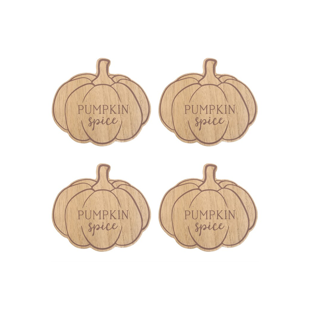 Accentuate your seasonal decor for Autumn with this set of 4 wooden Pumpkin Spice coasters. Shaped like pumpkins and in a neutral woodgrain, these pieces are perfect for creating beautiful table settings or keeping living spaces feeling cosy as the nights draw in.