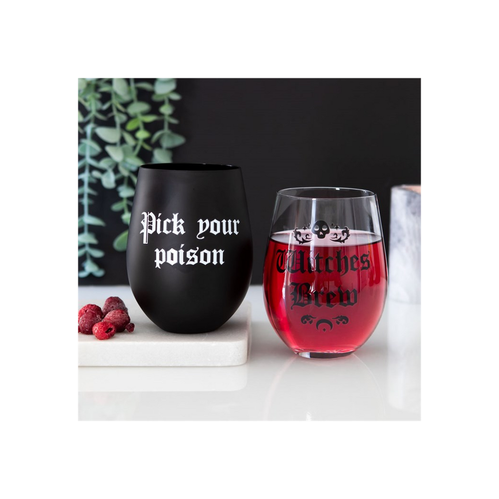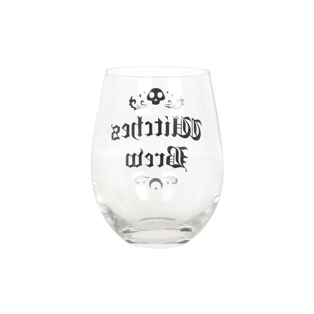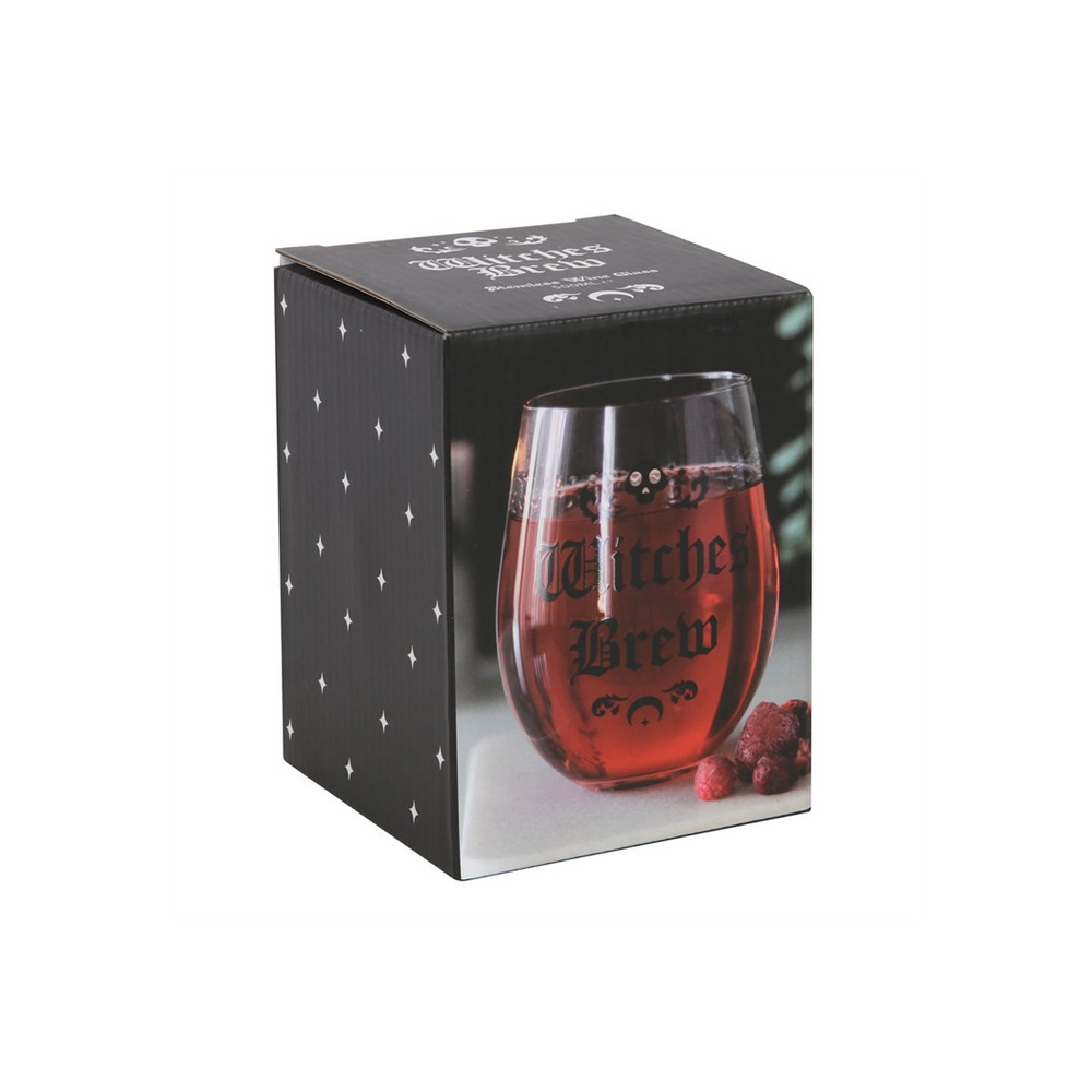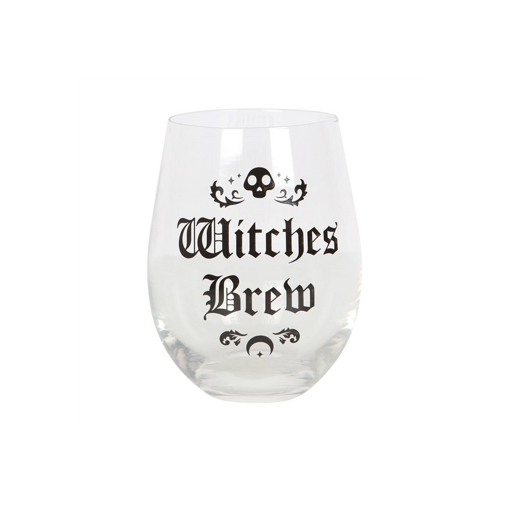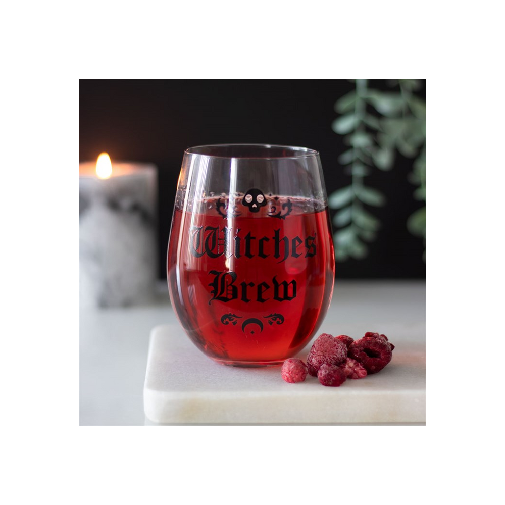 Concoct your own magic potions with this witches brew stemless wine glass. The glass features the text 'Witches Brew' in gothic blackletter. Product Dimensions: H12cm x W9cm x D9cm Packaged Dimensions: H13cm x W9.5cm x D9.5cm